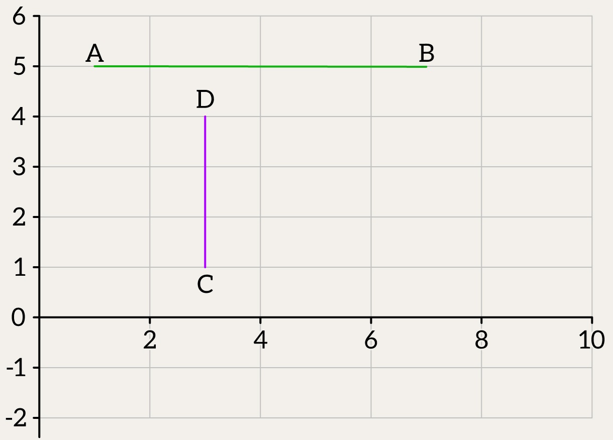Then we’ll have exactly the same logic as we did with planes: we treat each segment as a line and check on which side of that line the endpoints of the other segment lie. If the endpoints lie on opposite sides, the segments may intersect; if on the same side, they do not intersect. If any point lies exactly on the line, we additionally check whether it lies on the actual segment.