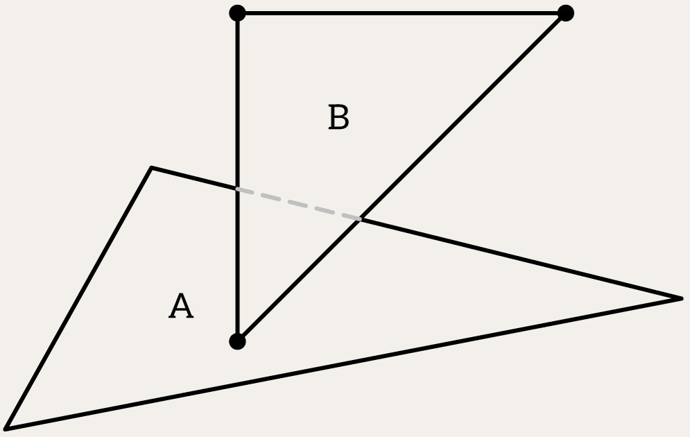 if (!intersects(A, B, epsilon) && !intersects(B, A, epsilon))